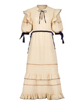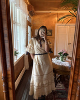The Saphira Dress is hand embroidered by our skilled team in Jaipur, India. Slight irregularities in stitching are no flaws – they are a reminder of the human hands behind each thread. We recommend gentle care to preserve the intricate details.