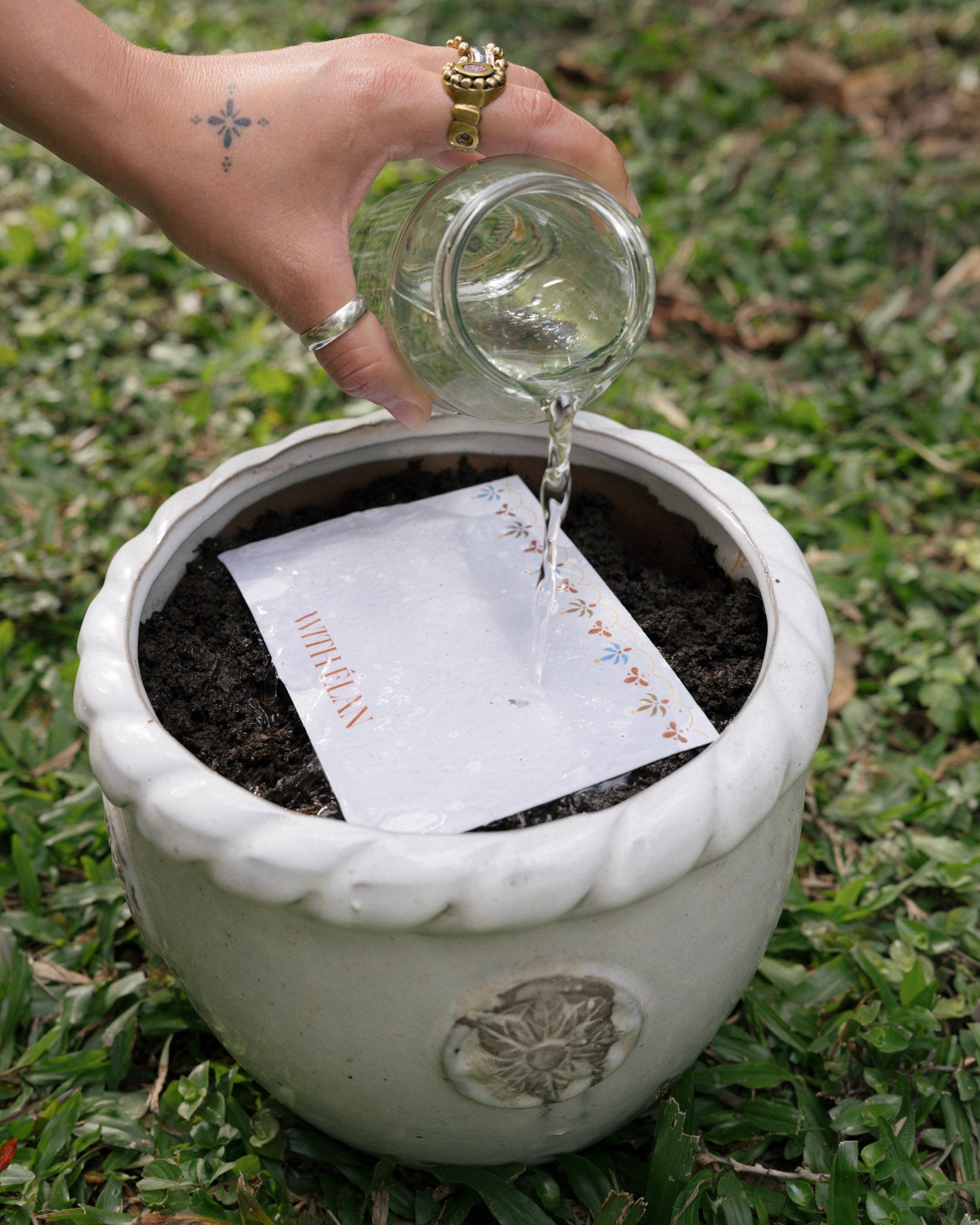 Our thank you cards are handmade in Australia from recycled office paper and offcuts from printers and paper mills. Each card is embedded with seeds from Australian farms, so rather than being discarded, it can be planted. As the paper naturally composts, the seeds bloom into something new – a quiet continuation of its story.